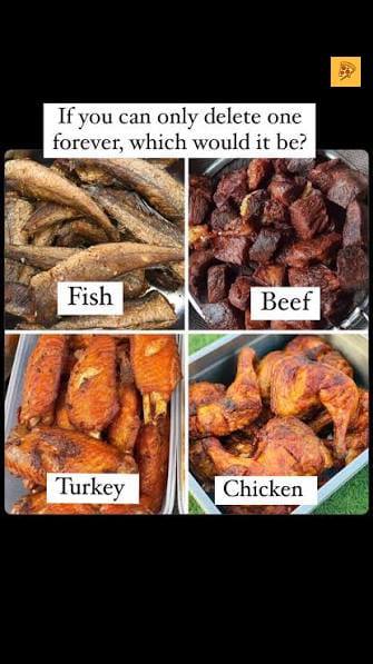 👉 Drop your answer: Fish / Beef / Turkey / Chicken
